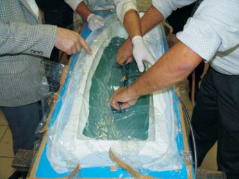 suchá tkanina uzavřená mezi vákuový pytel a formu